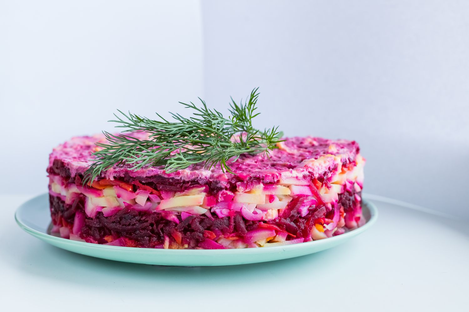 این غذا که اسم جالبی دارد، یکی از غذاهای سنتی روسیه است و از لایههایی شامل: